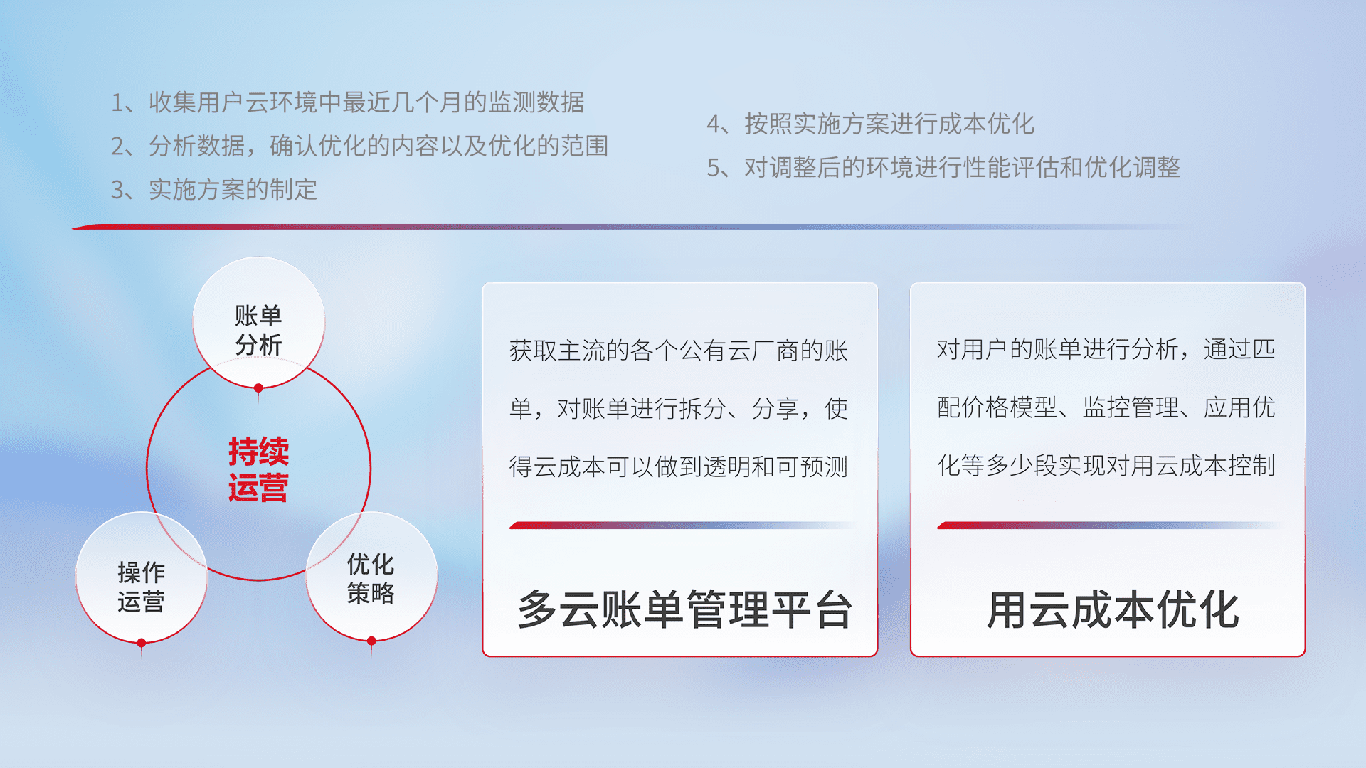 运用智能化工具分析云资源,,,,提供日常费用可视化工具,,,,自动账单拆分,,,,成本优化云上费用,,,降本增效。。